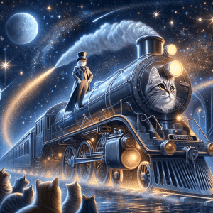 And so, Sir Whiskerton became the most beloved train conductor, not just on earth but all the way to the moon and back. His story was told for generations, inspiring cats and kittens everywhere to dream big and believe in the magic of their dreams.