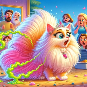 But Princess Fluff’s magnificent fur came with a not-so-magnificent problem. Every time she visited her litter box, a disaster ensued. Despite her best efforts to keep clean, her majestic tail would emerge with unwanted souvenirs, leaving a trail of stink that permeated the whole house. The smell was so overpowering that flowers wilted as she passed by, and even the family dog, who wasn’t known for his love of baths, would keep a safe distance.