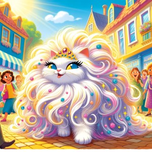 In the heart of a bustling town, where the sun always seemed to shine a little brighter, lived a cat unlike any other. Princess Fluff, as she was aptly named, boasted the longest, most luxurious fur in the entire world. Her coat shimmered in the sunlight and flowed like a royal cape behind her. Children and adults alike would stop and stare as she strutted down the street, her fur sweeping the ground with elegance and grace.